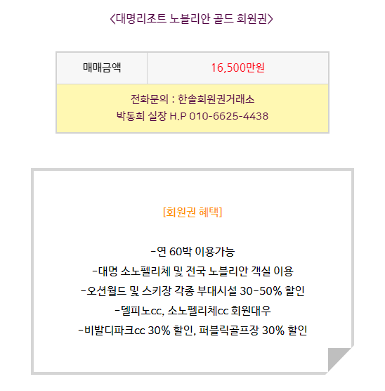 오늘은 대명리조트 노블리안골드 콘도회원권에 대해