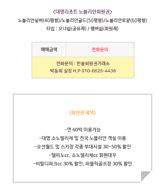 대명리조트 노블리안회원권 시세 및 혜택