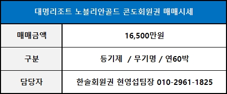 ■ 대명리조트회원권 노블리안골드 추천매물 안내 ■