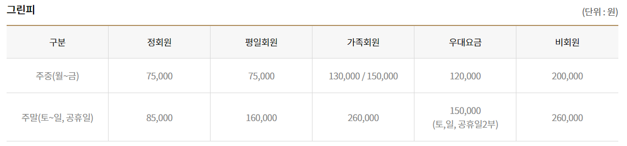 회원권의 종류에 따라서 시세와 혜택이 달라지기