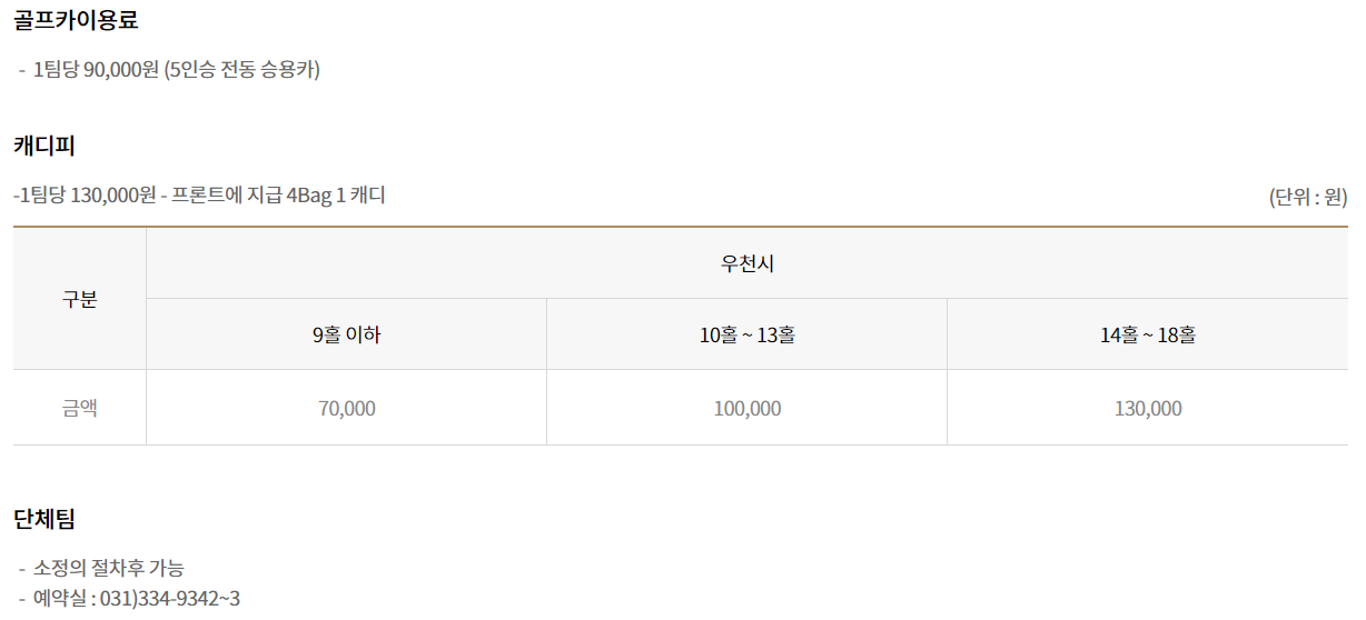 지산cc 이용요금 및 예약안내