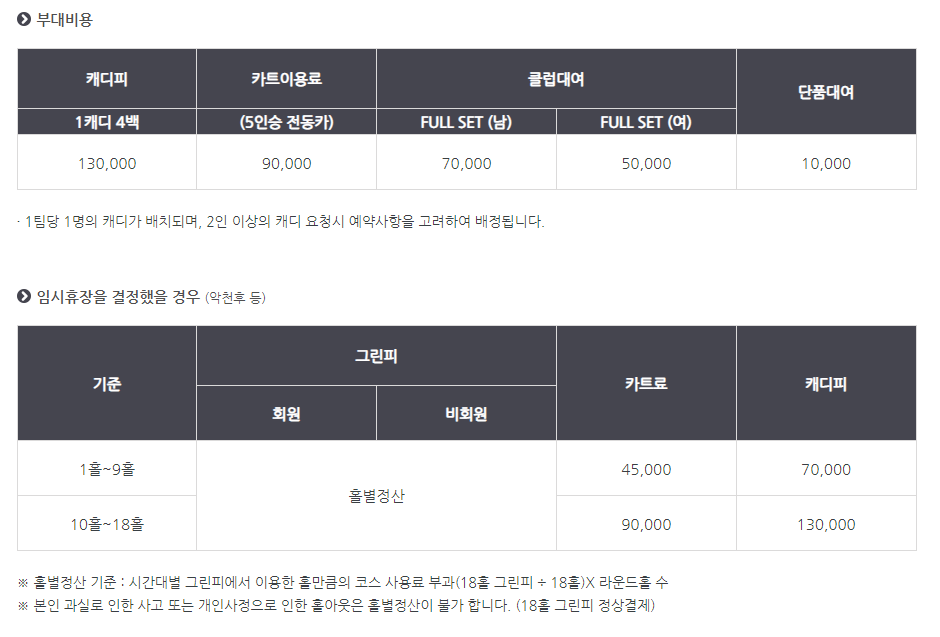서원밸리cc 이용요금 및 예약안내