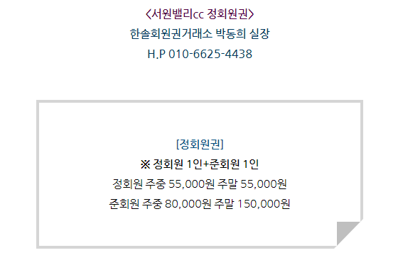 서원밸리cc 회원권은 정회원 1인과