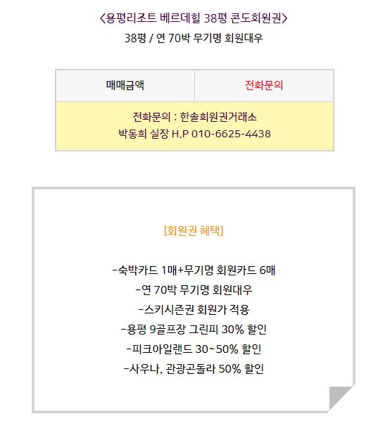 매매상담 - 한솔회원권거래소 박동희 실장 010.6625.4438