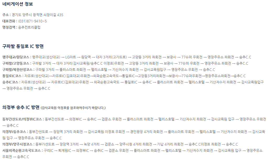 송추cc 오시는 길