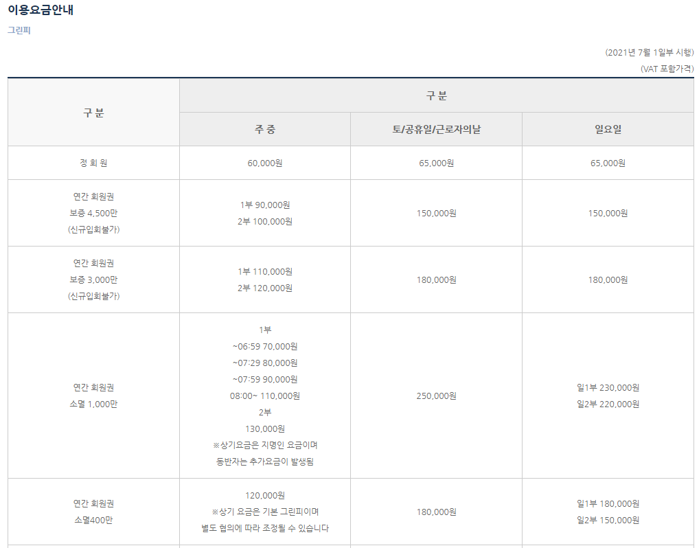가족회원 1인 입회로 구성되어 있습니다. 현재
