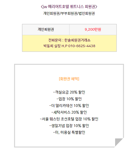 메리어트호텔 휘트니스 회원권은 개인회원권,