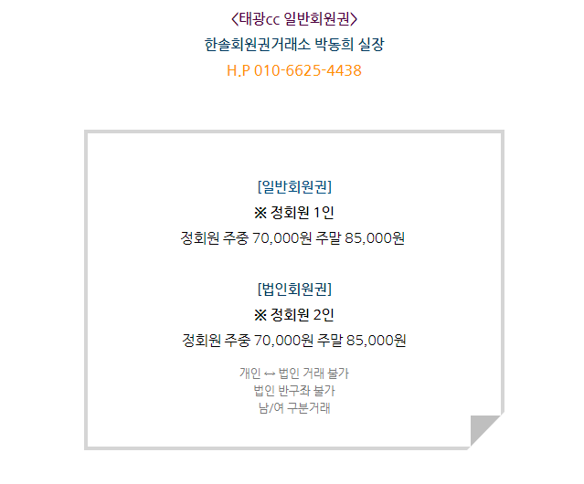 태광cc는 일반회원권과 법인회원권으로