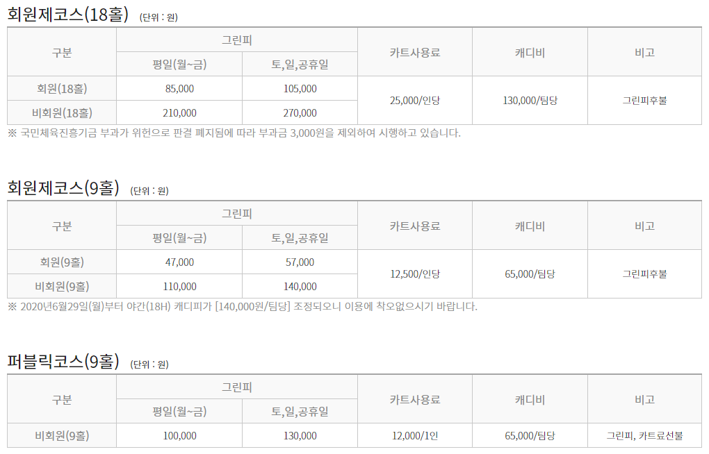 태광cc 이용요금 및 예약안내