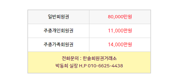 매매상담 - 한솔회원권거래소 박동희 실장 010.6625.4438