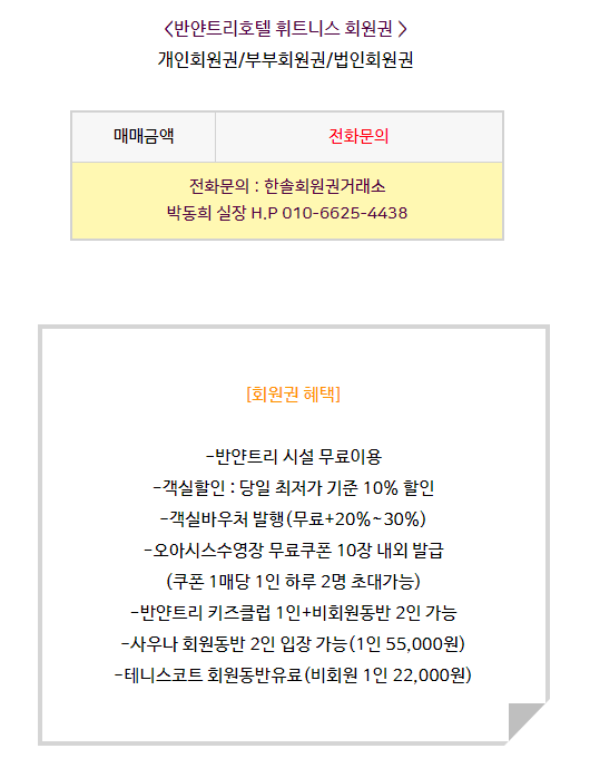 반얀트리호텔휘트니스회원권 시세 및 혜택 안내