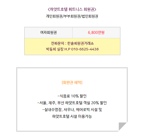 하얏트호텔회원권은 개인회원권과 부부, 법인