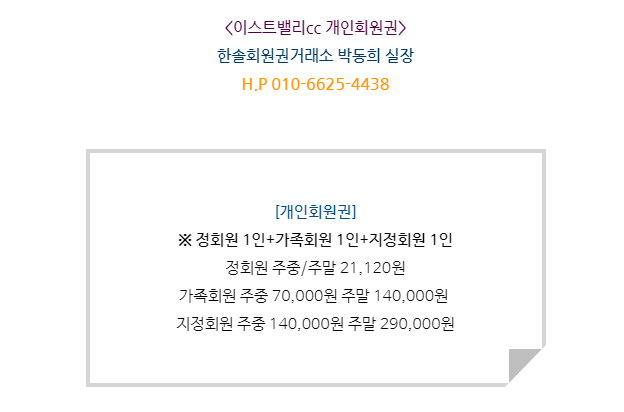 이스트밸리cc회원권은 개인회원권으로