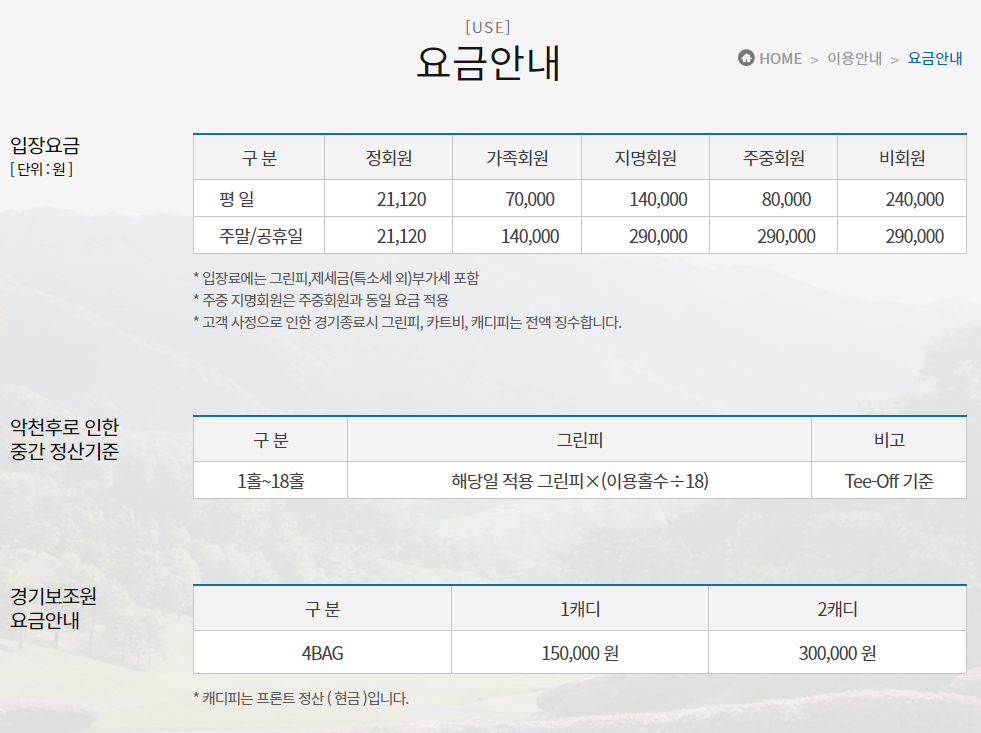 이스트밸리cc 이용요금 및 예약 안내