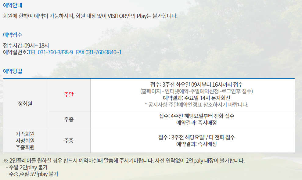 이스트밸리cc 이용요금 및 예약 안내