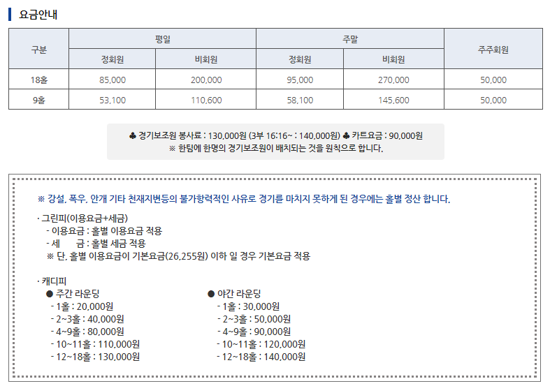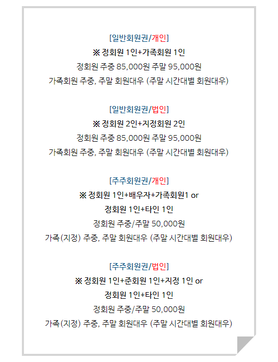 구분되어 있습니다. 회원권의 종류에 따라서 시세와
