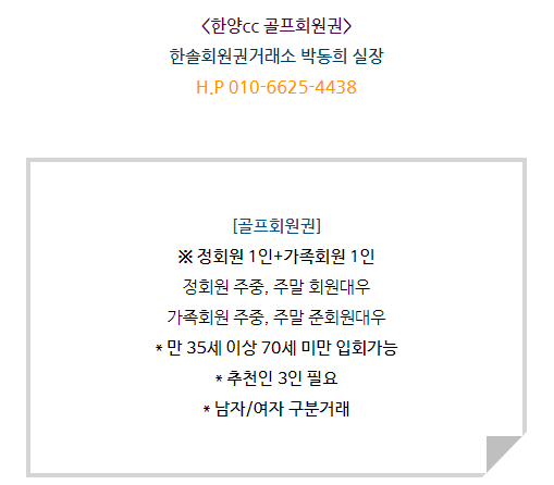 매매상담 - 한솔회원권거래소 박동희 실장 010.6625.4438