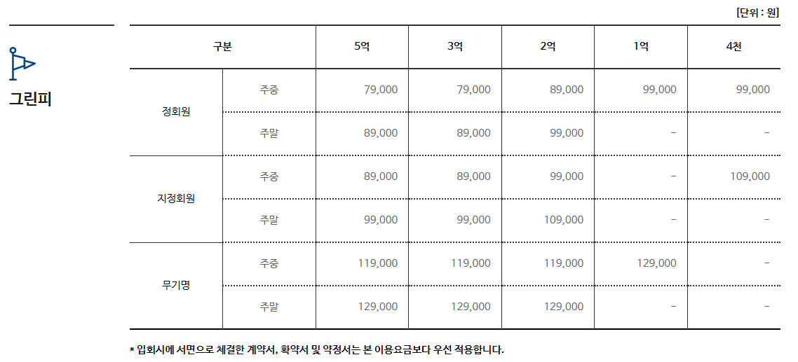 일반회원권, 주중무기명, 일반무기명까지 다양한