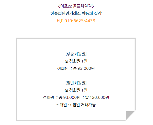 매매상담 - 한솔회원권거래소 박동희 실장 010.6625.4438