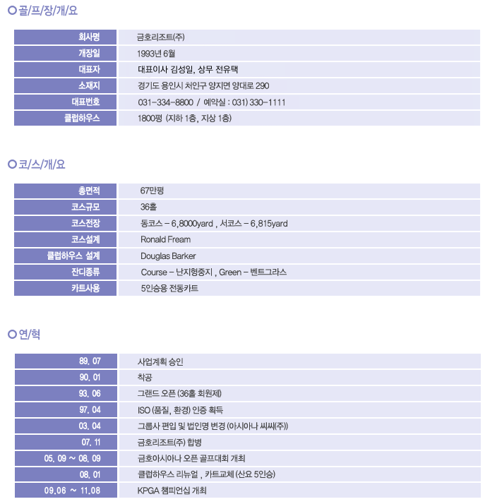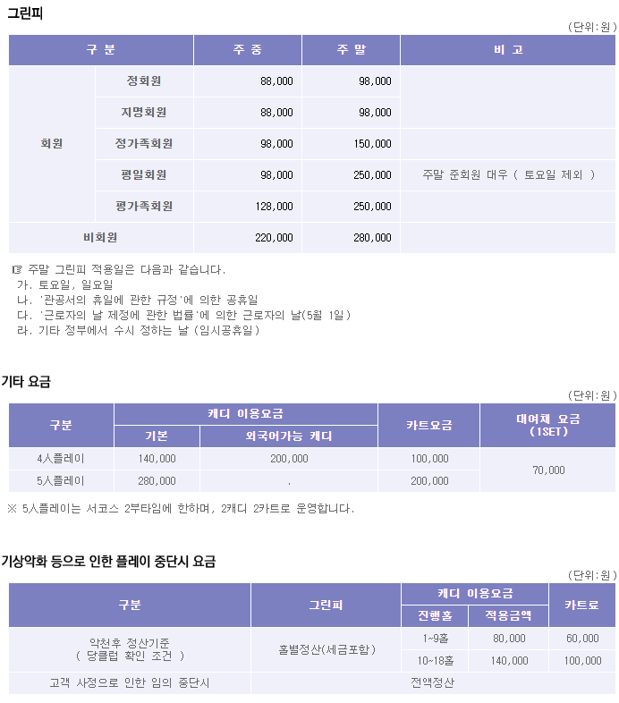 아시아나cc 이용요금 및 예약안내