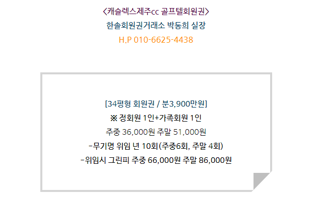 캐슬렉스제주cc회원권 매매안내