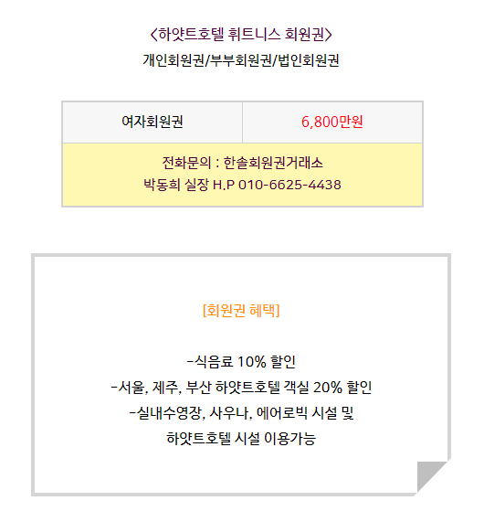 오늘은 하얏트호텔휘트니스회원권에 대해서