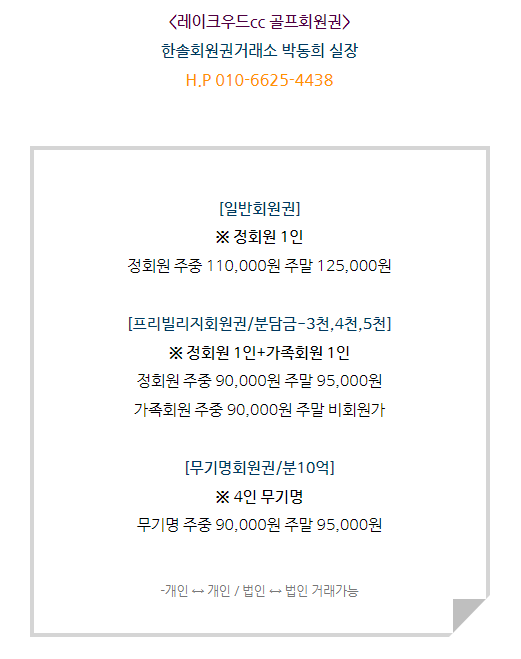 매매상담 - 한솔회원권거래소 박동희 실장 010.6625.4438