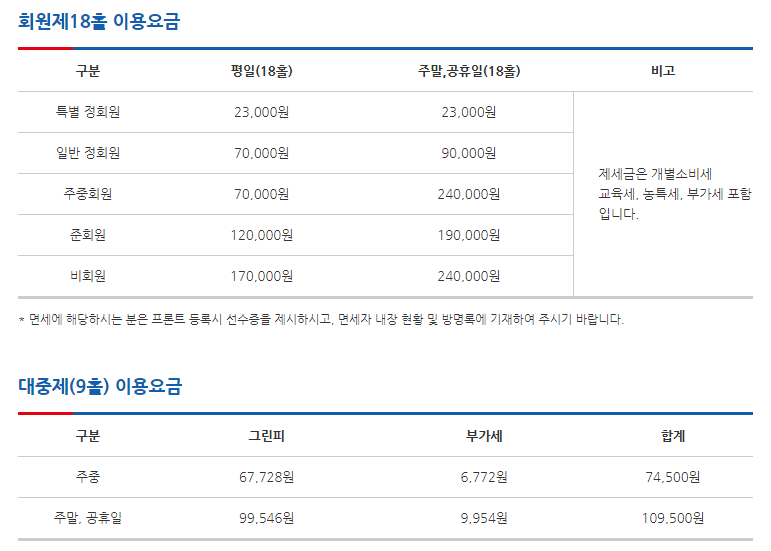 금강cc 이용요금 및 예약안내