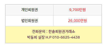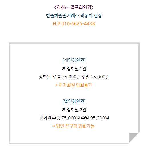 골프회원권/한성 한성cc회원권 매매안내 한솔회원권거래소 작성함 2021. 11. 24. 14:57 페이스북에 공유 카카오스토리에 공유 네이버에 공유 트위터에 공유 구글플러스에 공유 + 안녕하세요. 한솔회원권거래소 박동희 실장입니다. 오늘은 한성cc회원권에 대해서 알아보도록 하겠습니다. 매매상담 - 한솔회원권거래소 박동희 실장 010.6625.4438 한성cc회원권은 개인회원권과 법인회원권으로 구분되어 있습니다. 더욱 궁금하신 부분이 있다면 한솔회원권으로 문의하여 주시기 바랍니다. ▼▼▼ 한성cc 이용요금 및 예약안내 한성cc 오시는 길 골프/콘도/휘트니스 회원권 한솔회원권거래소 빠른상담을 원하신다면 아래의 이미지를 클릭하여 주시기 바랍니다. ▼▼▼ 공유하기 게시글 관리 한솔회원권거래소 저작자표시 (새창열림) '골프회원권/한성' 다른 게시물 보기 더보기 2022.01.26 한성cc회원권 매매 안내드립니다. 2021.12.21 한성cc회원권 매매 안내드립니다. 2021.10.13 한성cc골프회원권 매매안내 2021.08.09 한성cc회원권 혜택안내