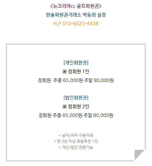 뉴코리아cc회원권은 개인회원권으로
