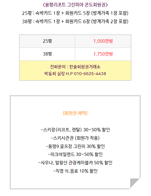 오늘은 용평리조트 그린피아 콘도회원권에 대해