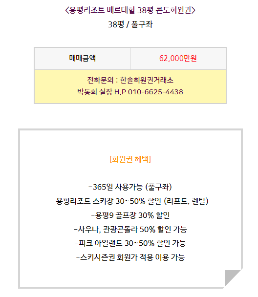 용평리조트 베르데힐 콘도회원권 매매안내