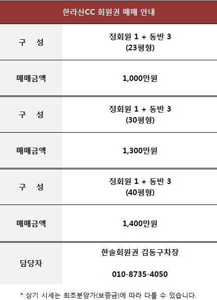 제주 한라산CC 골프 회원권 매매 정보