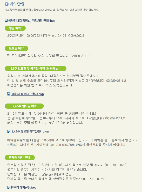 남서울cc 이용요금 및 예약안내