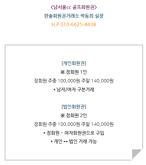 남서울cc회원권은 개인회원권과