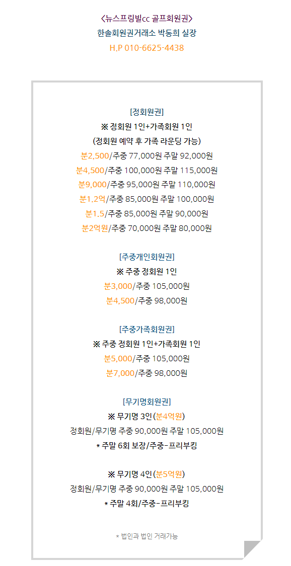 매매상담 - 한솔회원권거래소 박동희 실장 010.6625.4438