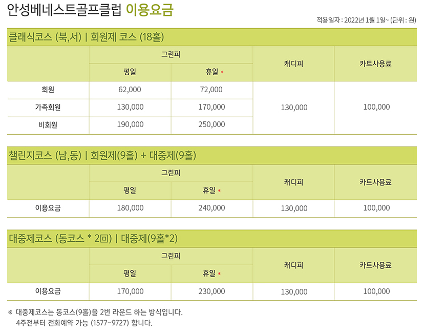 주중회원권, 나다회원권으로 구분되어 있습니다.