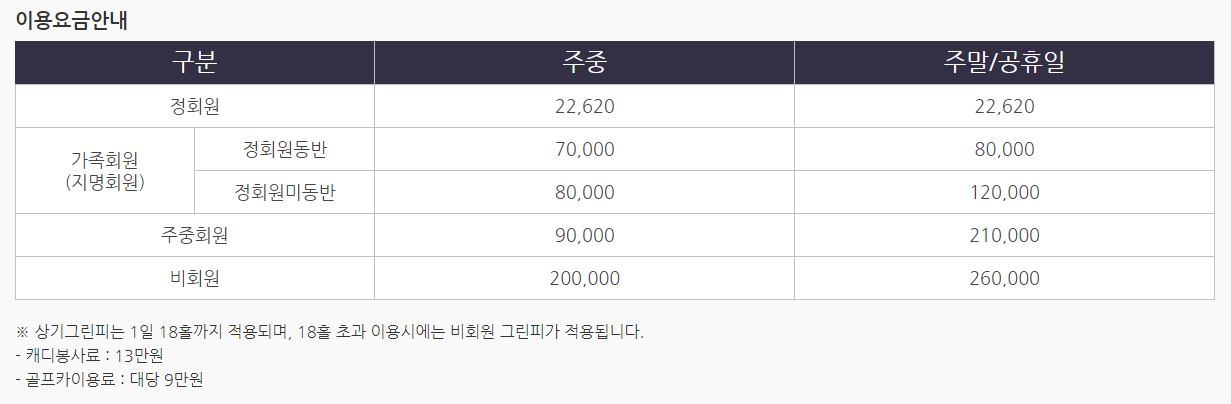 프리스틴밸리cc 이용요금 및 예약안내