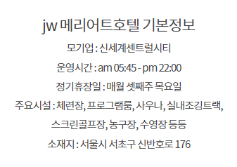 jw 메리어트호텔 휘트니스 회원권 안내드립니다.