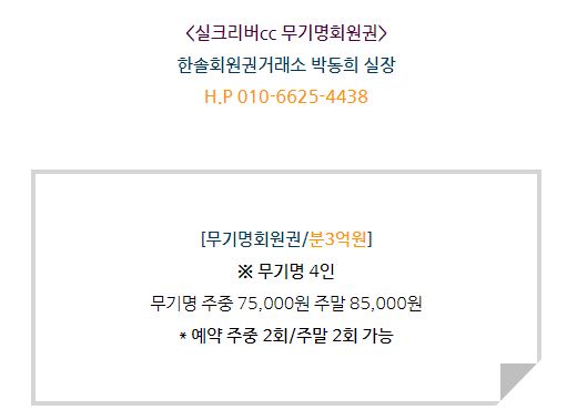 오늘은 실크리버cc회원권에 대해서 알아보도록