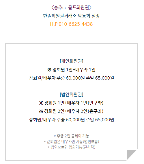 매매상담 - 한솔회원권거래소 박동희 실장 010.6625.4438