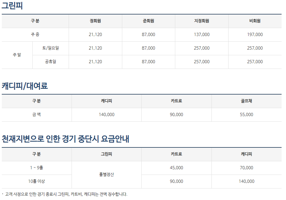 화산cc 이용요금 및 예약안내