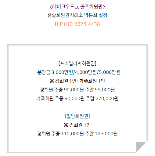 매매상담 - 한솔회원권거래소 박동희 실장 010.6625.4438