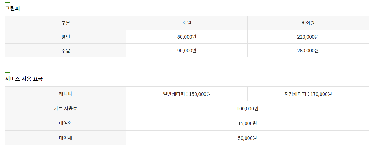 구분되어 있습니다. 회원권의 종류에 따라서 시세