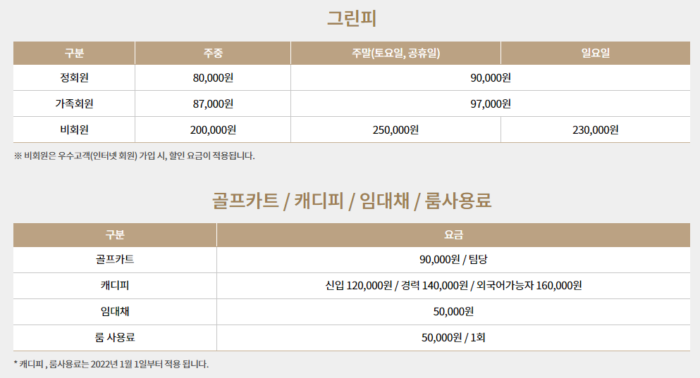 라데나cc 이용요금 및 예약안내