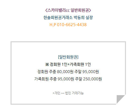 스카이밸리cc회원권은 일반회원권으로