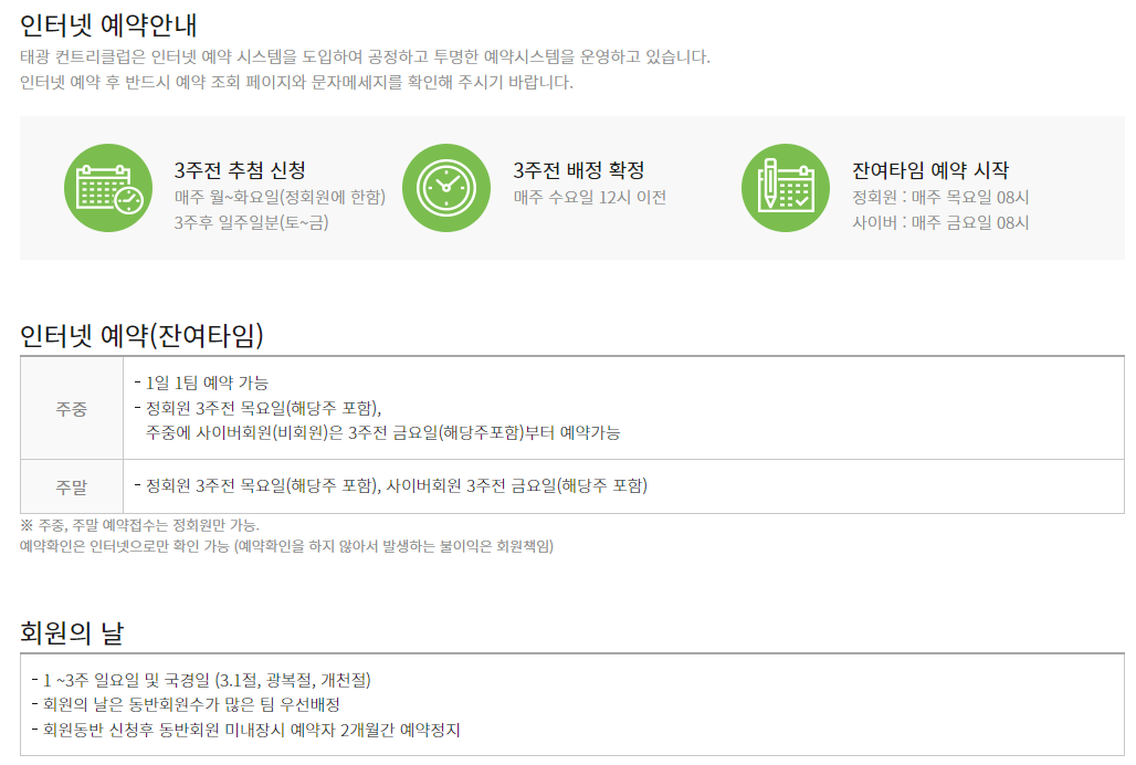 태광cc 이용요금 및 예약 안내