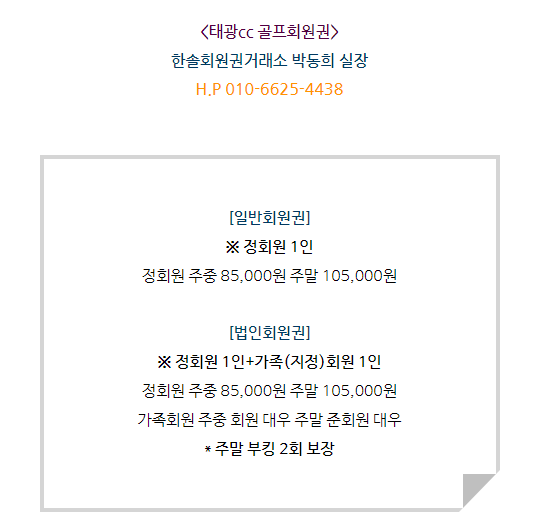태광cc회원권은 개인회원권과 법인회원권으로