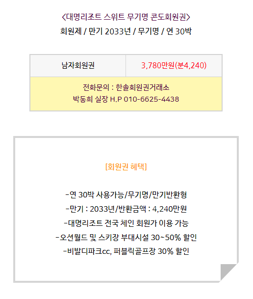 대명리조트 스위트 콘도회원권 매매 안내드립니다.