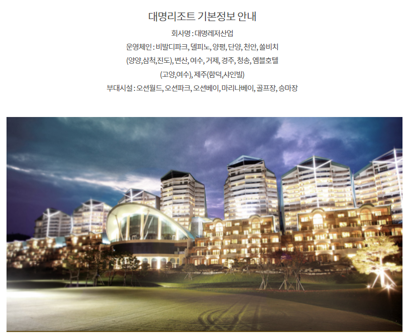 있습니다. 대명리조트의 전국 체인을 회원가로 이용이 가능하며 대명의